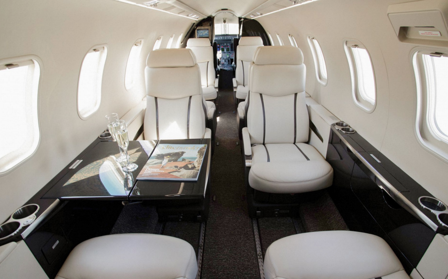 Up to 8 passengers in a double-club configuration designed for productivity and comfort.